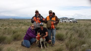 Trigger on point; Bella honoring. Pheasant hunting in Eastern Washington.